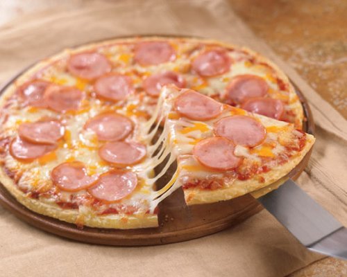 Our original pizza crust is made with layers of dough that are perfectly proofed for a crunchy yet soft on the inside crust. Each pizza is smothered with our special herb-flavored sauce, real slices of Canadian Style Bacon and real mozzarella and cheddar cheeses. Turn your typical family meal into a Special Recipe event with a pizza that everyone will enjoy.