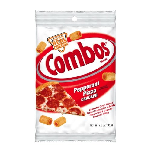 Combos Pepperoni Pizza Crackers are crunchy oven baked pizza crusts with a zesty pepperoni and cheese flavored filling and no trans fat.